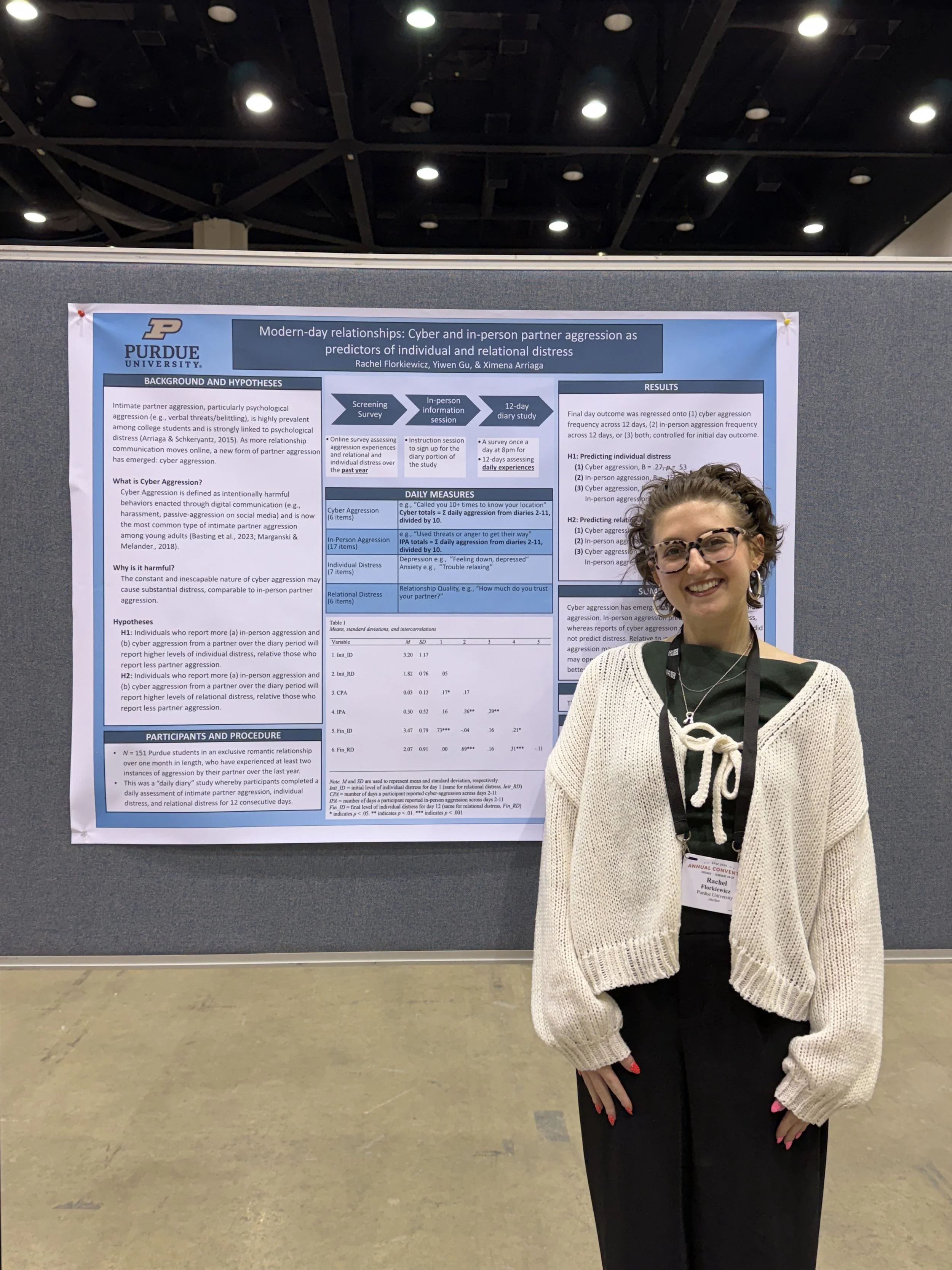 ARCC lab member Rachel Florkiewicz presented a poster at SPSP 2026 in Chicago titled: “Modern-day relationships: Cyber and in-person aggression as predictors of individual and relational distress”